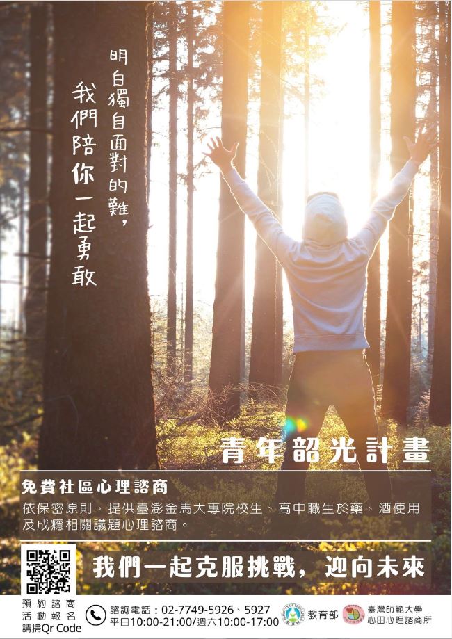 【轉知】國立臺灣師範大學辦理「青年韶光計畫」,邀請有需求之學生多加利用